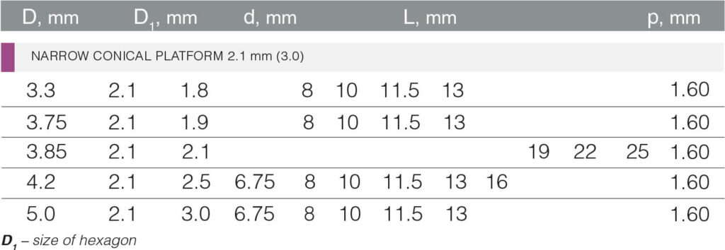 Active Bio Plus is a conical shaped implant with a helical aggressive thread. It is used under one- or two-steps procedure in all bone types. It prevents bone injuries and enlarges  the area of direct contact of the implant surface with the bone that speeds up the process of osseointegration . Due to a formation of a new bone around the  triangular part and enhanced antirotation effect, the best conditions for early rehabilitation are provided when the implant is used.